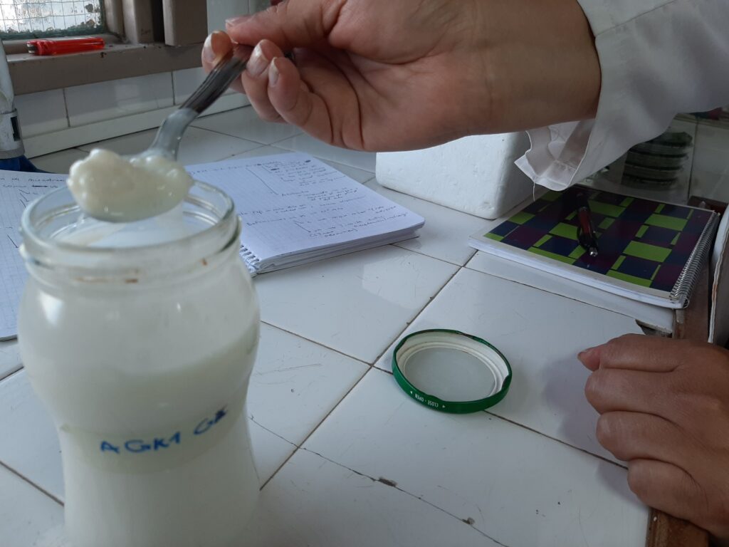 Una vez al año el equipo toma muestras del kéfir que se están consumiendo en los comedores y realizan un análisis microbiológico. “Llega la muestra a nuestro laboratorio y le hacemos un testeo sensorial, vemos si tiene el pH que tiene que tener, que debe estar entre 3 y 4. Y, por otro lado, analizamos bacterias y levaduras que son los microorganismos que componen el kéfir”, detalla Moscoso.