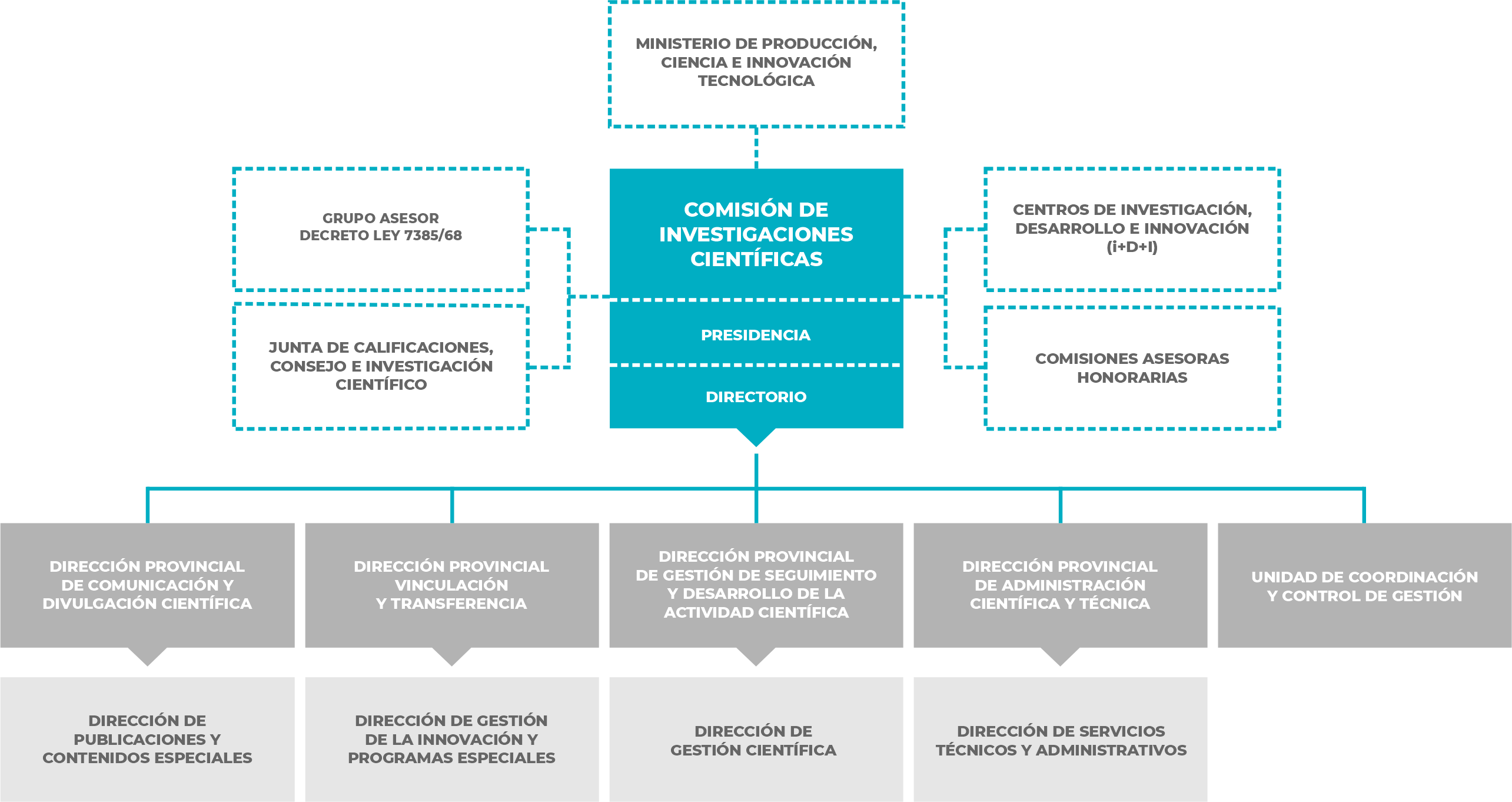 La CIC es un organismo autárquico que se relaciona con el Poder Ejecutivo Provincial a través del Ministerio de Producción, Ciencia e Innovación Tecnológica de la provincia de Buenos Aires.